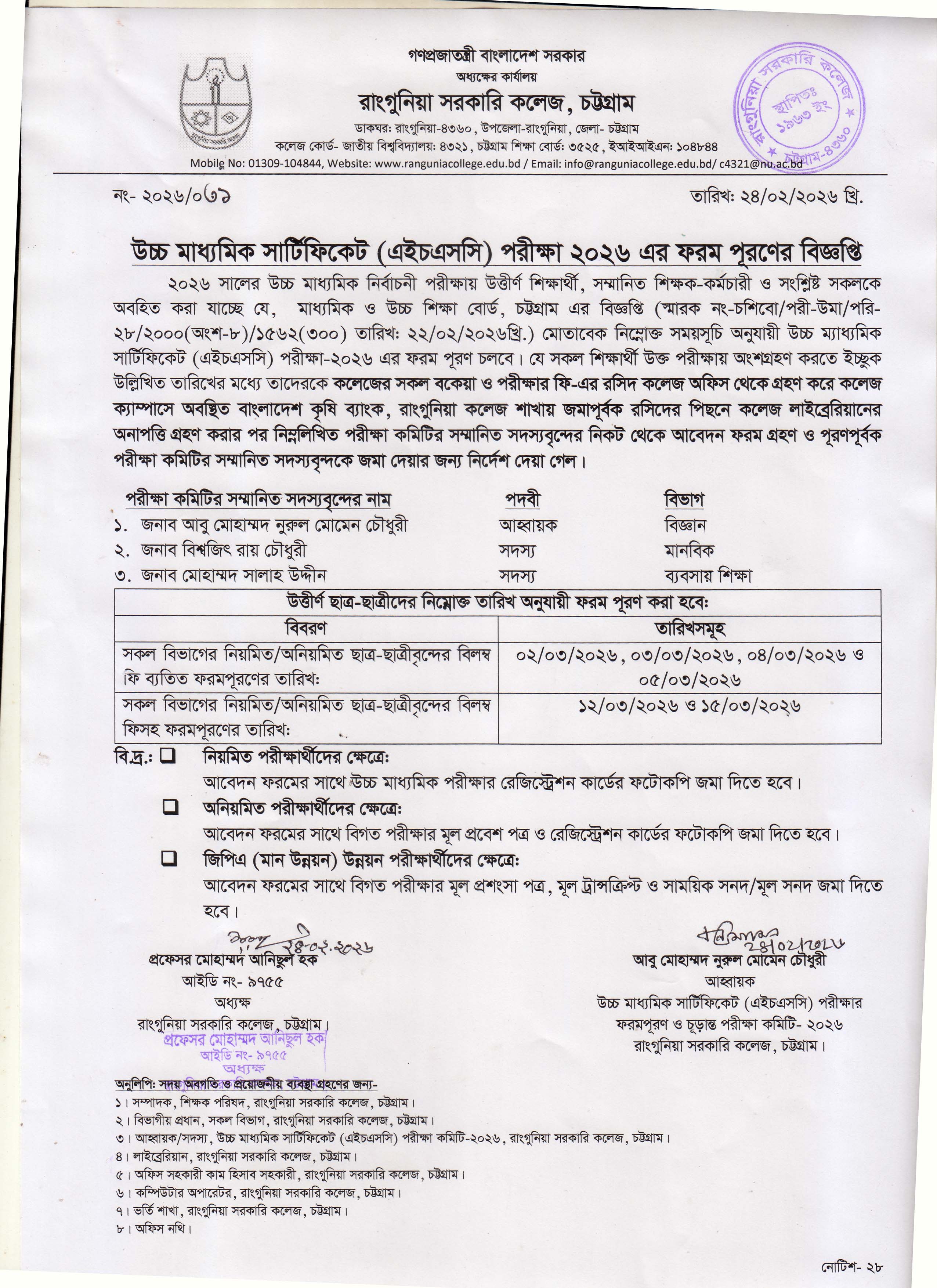 উচ্চ মাধ্যমিক সার্টিফিকেট (এইচএসসি) পরীক্ষা ২০২৬ এর ফরম পূরণের বিজ্ঞপ্তি